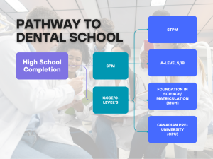 Students must complete the Matriculation Science stream and secure strong grades in the core science subjects to be eligible for dental school. Matriculation program, which is a one-year course offered by the Ministry of Education Malaysia (MOE). This program is designed to prepare students for undergraduate courses at local universities, including dental schools.